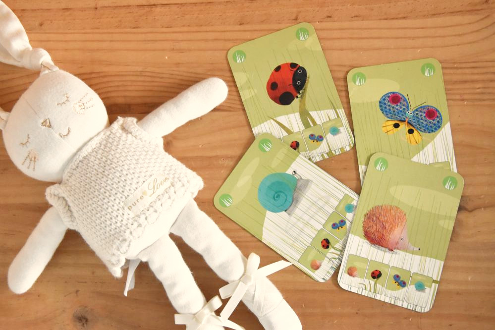 Et comme Petit Chat n’a pas encore 4 ans, nous avons trouvé un jeu de sept familles adapté aux plus petits : Mini Nature édité par Djeco.