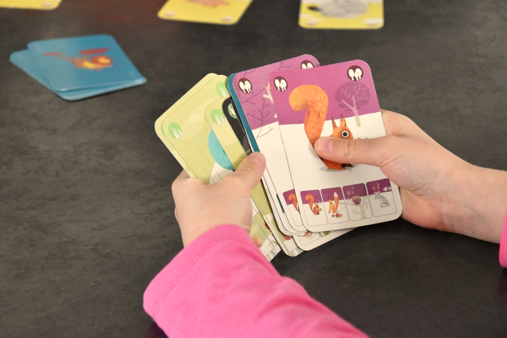 De plus chaque membre de la famille est rappelé sur les cartes, cela permettant de mieux se rendre lorsque la famille est complète. Et il n’y a aucun doublon ! Donc si un joueur se trompe de famille en demandant par exemple « le crocodile dans la famille de la forêt » alors qu’il appartient à la famille « savane », il pourra quand même obtenir le crocodile puisque celui-ci n’est présent qu’une seule fois. Notez également que le code couleur permet de différencier chaque famille.